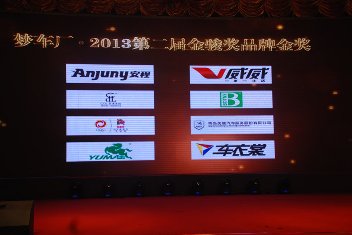 2013年6月26日,由中國(guó)汽車用品聯(lián)合會(huì)、中國(guó)汽車維修行業(yè)協(xié)會(huì)汽車裝飾美容工作委員會(huì)主辦,全國(guó)各省市汽車用品商/協(xié)會(huì)、河南勵(lì)展宏達(dá)展覽有限公司聯(lián)辦的夢(mèng)車廠·2013中國(guó)汽車用品流行趨勢(shì)發(fā)布會(huì)暨第二屆中國(guó)汽車用品行業(yè)“金駿獎(jiǎng)”頒獎(jiǎng)盛典在鄭州會(huì)展中心軒轅堂隆重舉辦。被業(yè)界譽(yù)為中國(guó)汽車用品行業(yè)“奧斯卡”頒獎(jiǎng)盛典,匯聚了眾多行業(yè)高端品牌及頂尖人物。