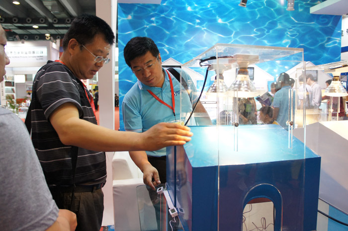 展覽期間,展臺(tái)內(nèi)最為火爆的場(chǎng)面在于客戶體驗(yàn)區(qū),眾多的參觀觀眾在我司工作人員熱情接待下,逐一了解到我司最新環(huán)保科技型產(chǎn)品——建筑節(jié)能隔熱涂料,并踴躍參與我司反射隔熱涂料效果展示測(cè)試。從現(xiàn)場(chǎng)測(cè)試情況來(lái)看,涂刷過(guò)我司隔熱涂料的樣板在與涂刷普通涂料的樣板對(duì)比中形成鮮明的反差,現(xiàn)場(chǎng)溫度測(cè)試儀顯示,涂刷過(guò)我司隔熱涂料展板與普通展板溫差達(dá)到15度,現(xiàn)場(chǎng)立竿見(jiàn)影的效果一度讓展臺(tái)人氣爆棚,并引起眾多客戶極濃興趣。