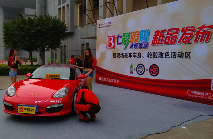 廣州保賜利作為本屆展會主場力邀的知名品牌,不僅高端亮相,更在本屆展會同期活動——漂移競技大賽活動區(qū)域,現(xiàn)場發(fā)布保賜利2013年新品——七彩噴膜(可撕噴膜)。