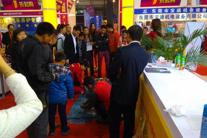 展位現(xiàn)場,保賜利展臺設(shè)計呈現(xiàn)出高端、大氣,并配有超大屏幕的LED顯示屏,成為眾多觀覽觀眾首選,眾多觀眾更在現(xiàn)場活動中,踴躍參與,現(xiàn)場熱購更一度達(dá)到狂熱,人氣爆棚。在漂移競技大賽區(qū)域,保賜利現(xiàn)場發(fā)布的七彩噴膜(可撕噴膜),不僅吸收超高人氣,現(xiàn)場更有美女走秀,七彩噴膜現(xiàn)場對法拉利等世界名車進(jìn)行輪轂改色施工演示。