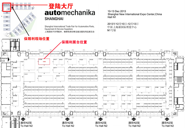2013年12月10-13日,我司將參加 “法蘭克福(上海)展會”,該屆展會為亞洲規模最大的汽車零部件、維修檢測診斷設備及汽車用品展覽會。保賜利展臺信息位于:N1號館,C區域,特裝展位N1G09位,72平方。